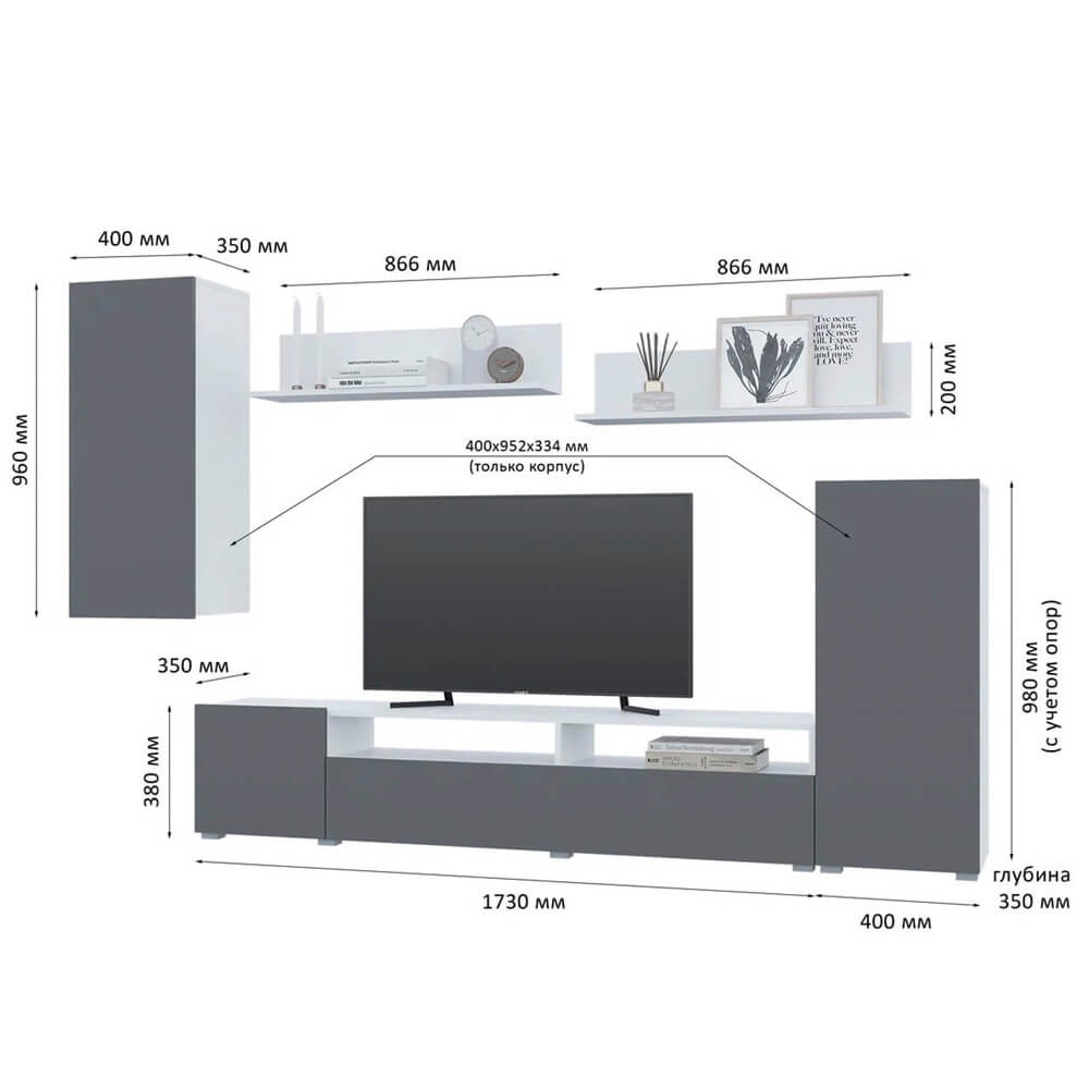 Размеры ниши под ТВ (ВхШхГ) мм: