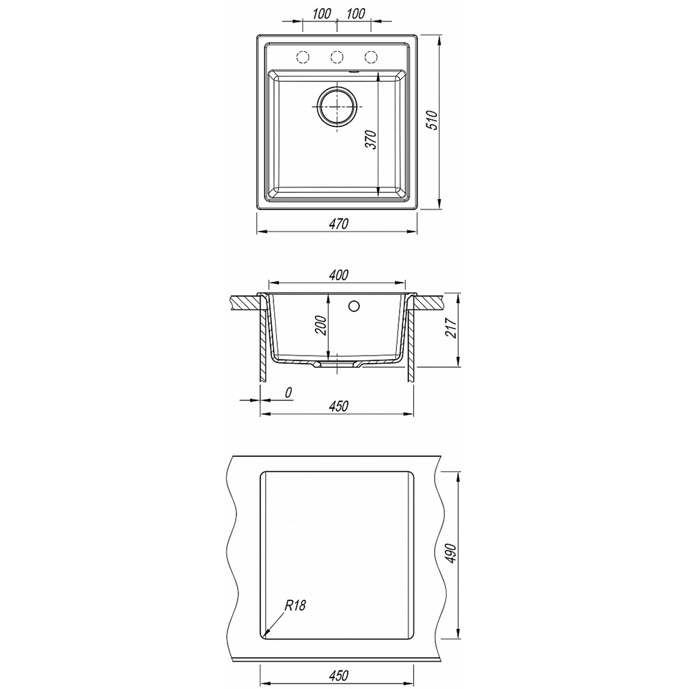 Компактная мойка с вместительной чашей. Дополнительные отверстия под аксессуары. Элегантный дизайн. Комплектация. Отводная арматура с выпуском 3 1/2 (D=90 мм) и переливом.