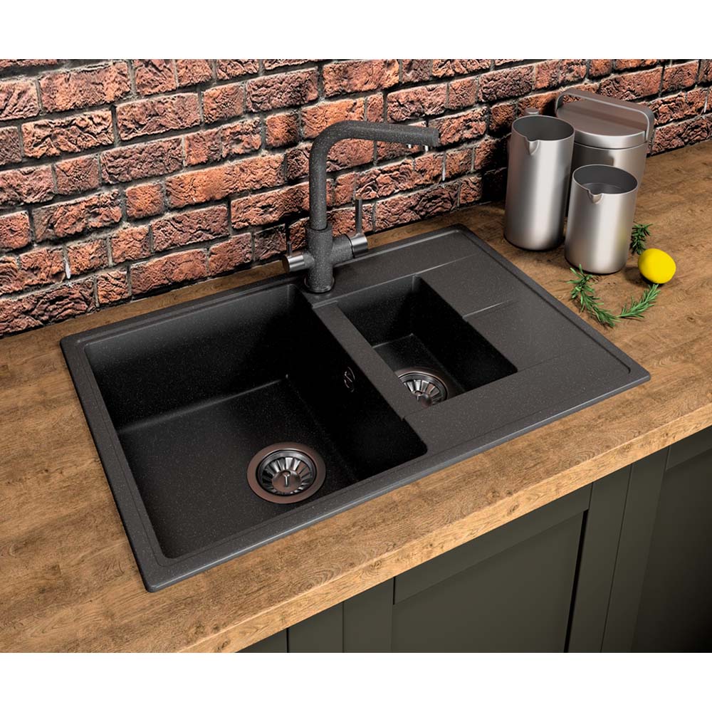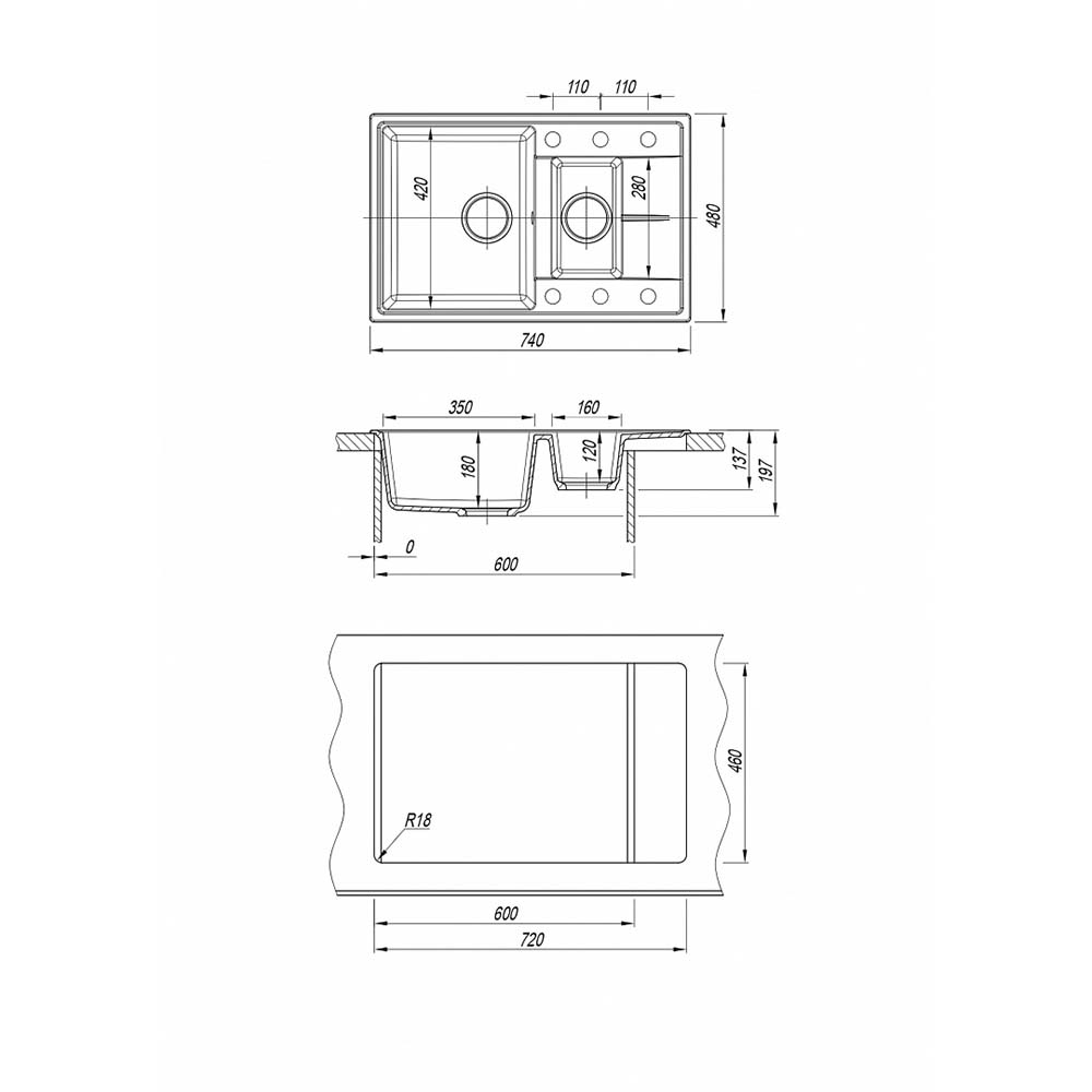 Компактная мойка с дополнительной малой чашей и крылом, отлично подходит для малогабаритной кухни, модель оборачиваемая, монтаж в базу 600 мм. Предусмотрены дополнительные отверстия под аксессуары.